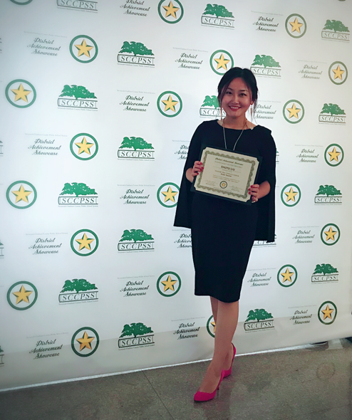 Ms. Liu is recognized as one of the honorees for her outstanding contribution to the lives of students, her excellence in service, and to the support of district goals in the Savannah-Chatham County Public School System.