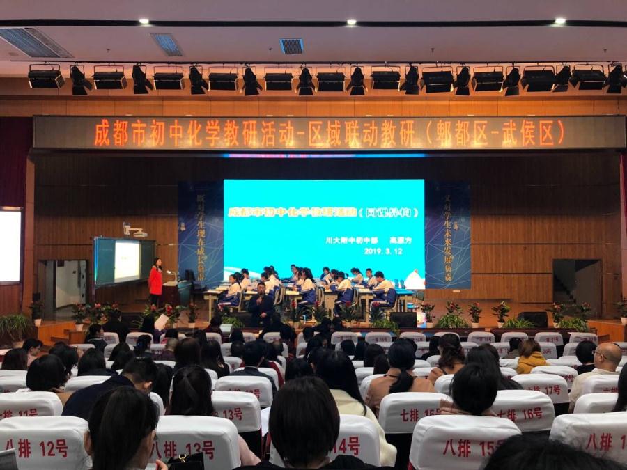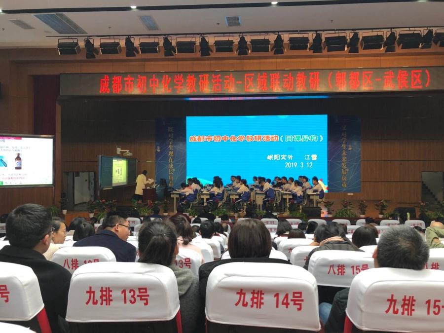 成都市区联动教研会于2019年3月12日在成都市第十二中学(川大附中)进行,由武侯区川大附中和郫都区岷阳实外的两位老师带来了《中和反应》的同课异构课例,展示新教学理念下如何上好化学课。这是一场高标准的教学盛宴,是一次高质量的教学示范,是一座深入的教师与教师交流的平台,是一场教师比拼教学艺术的打擂台。本着提高自身教学水平,增长见识,积累经验,相互学习的目的,我组全体教师积极参与本次大赛的听课当中。