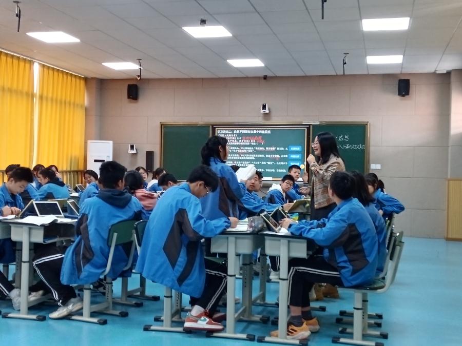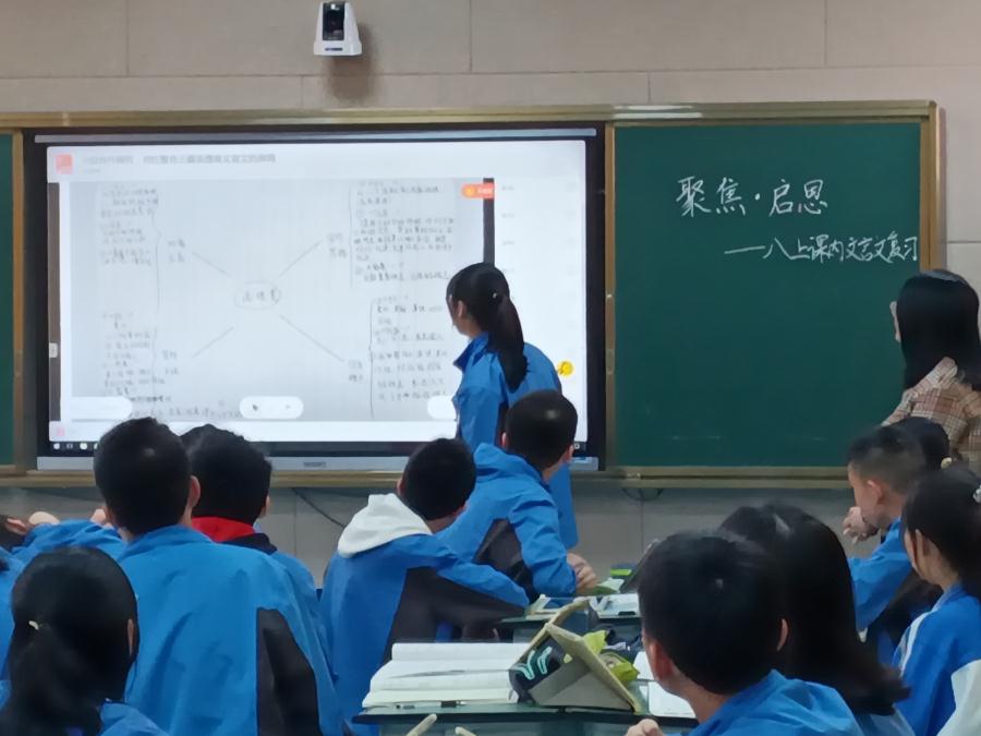 2023年4月3日,信息技术课题组齐聚五楼录课室,开展智慧课堂环境下的复习课模式创新课例研究,由课题组王俊霖老师带来一趟语文复习课《聚焦、启思——八上课内文言文》,校工会主席杨红副校长罗晓章、课程与教学处主任陈国华、教科室主任文传福以及课题组全体教师参与了观摩活动。
