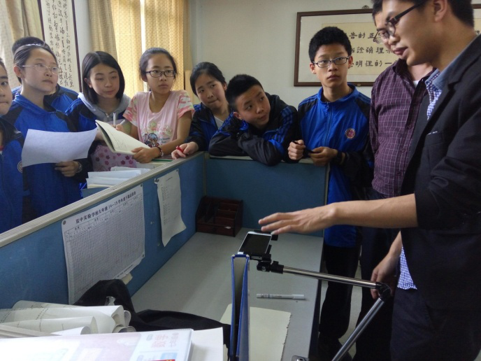 活动内容:技术人员指导培训学生如何利用手机录制讲题的微视频,包括工具有手机支架、手机、笔、纸等,先由技术人员指导操作,然后解答疑问,最后由学生亲自动手现场录制讲题微视频,培训完后,学生录制的视频还不错,于是七年级9班学生开始着手利用周末做这一对学生对老师都很有意义的一件事情。