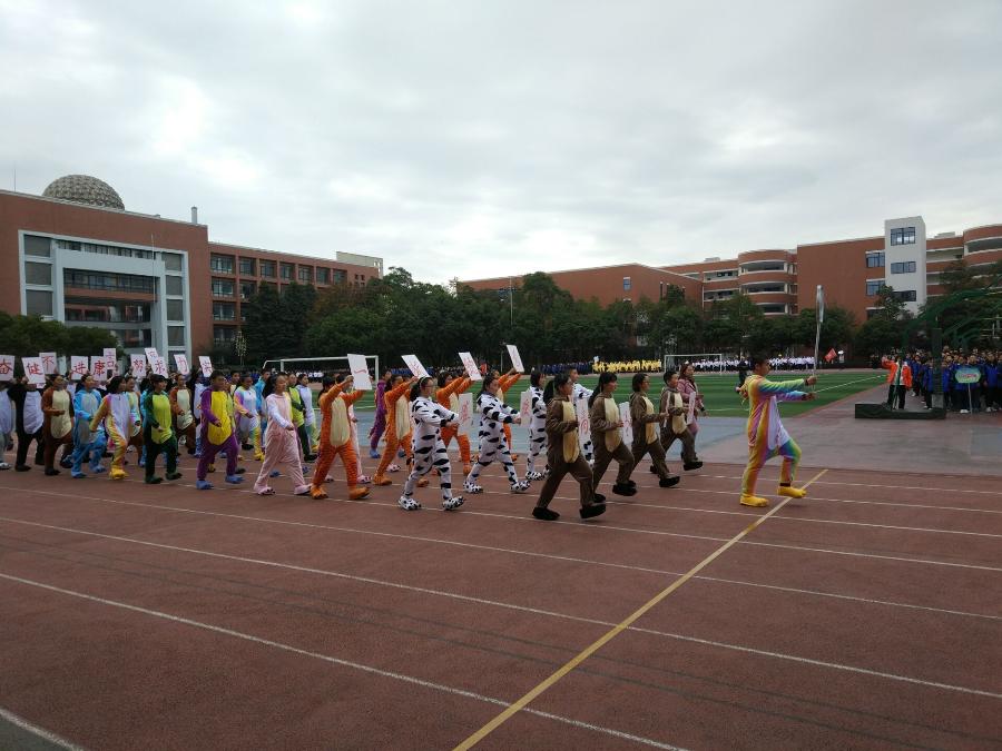 开幕式在欢乐祥和的音乐声中拉开帷幕。护旗手高举国旗、校徽先经过主席台,然后是七、八年级共43个班级穿着整齐的服装,高喊着”班级口号”,迈着整齐的步伐、昂首挺胸的经过主席台,接受领导检阅。有许多班级还排练了整齐的节日,展示出了各班班级风采.