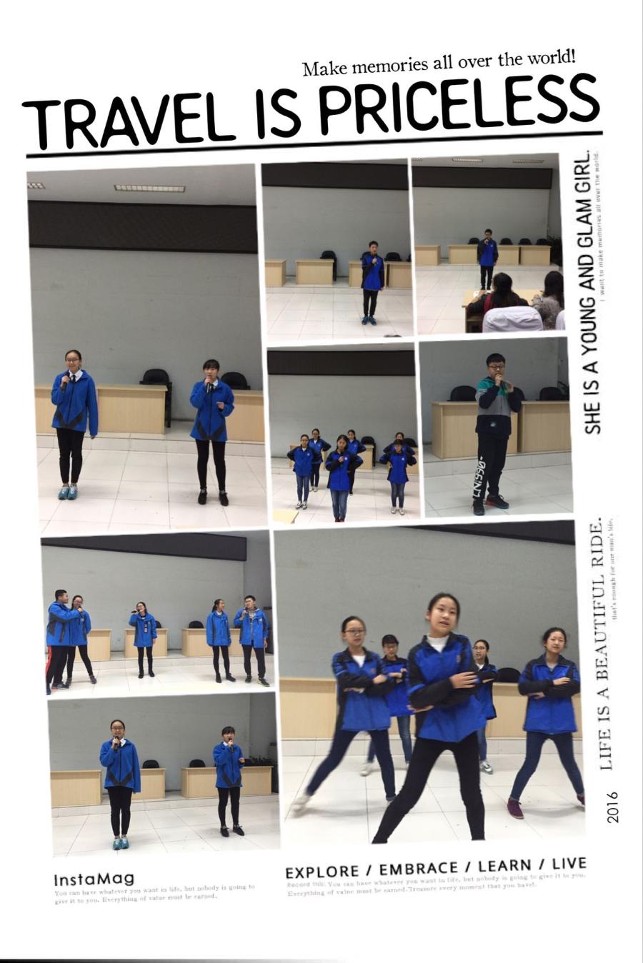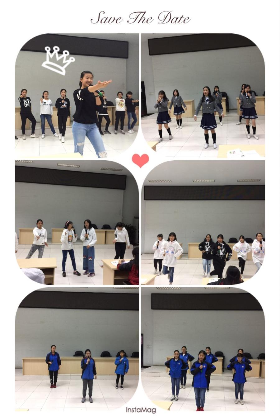 2016年11月15日下午,第14届“校园英语活动月”8年级英语歌曲独唱(组合)比赛在学校学术演讲厅举行。同学们在课余时间精心的准备、排练。今天尽情展现了自己的歌喉以及自编自导的舞蹈。
