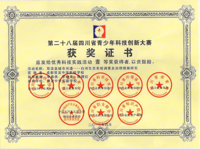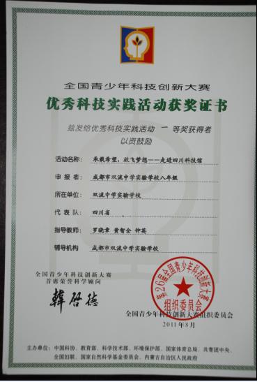 科技实践活动获全国一等奖