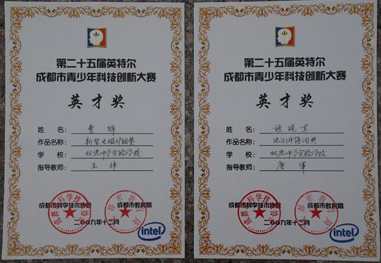 我校学生获市科创大赛英才奖