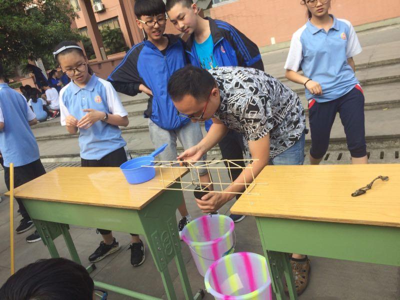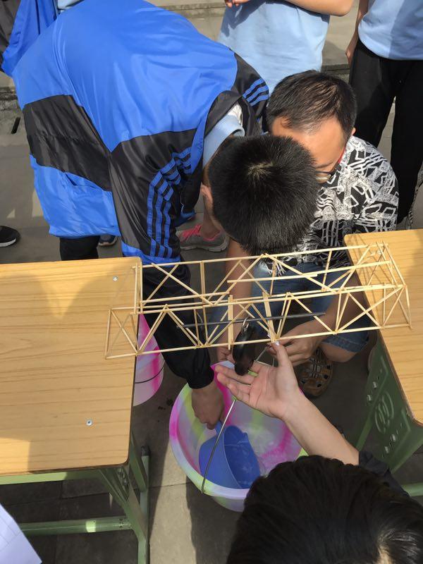 2017年6月1日,我校第十届科技节创意大赛——桥梁承中比赛在英语角进行。比赛中,同学们积极发挥自己的创意,用一根根小木棍制作设计出了各式各样的桥梁模型,有梁式桥、拱式桥、悬索桥、斜拉桥、刚构桥和组合体系桥。本次活动丰富了同学们的课余生活,也培养了同学们的创造性。