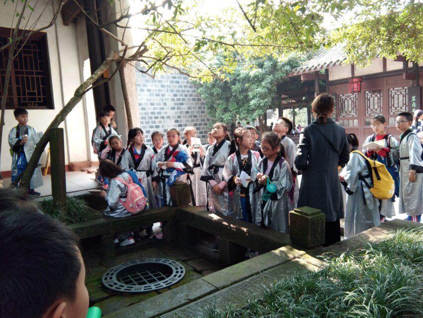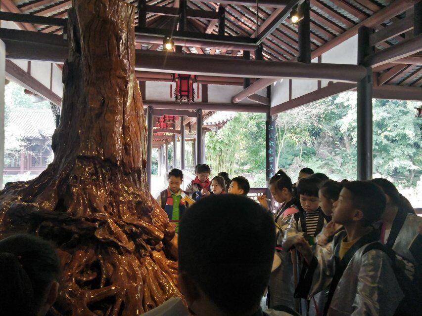 走进三苏祠,古木参天,曲径通幽。在老师的讲解下,孩子们参观三苏生平展区。
