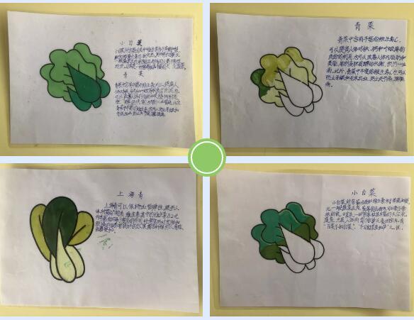 为了更有秩序地开展此次蔬菜义卖活动,培养学生们之间的集体意识和组织协作能力,科学老师和同学们开始了头脑风暴,展开了创意十足的宣传策划工作,设计了有机蔬菜的植物名片和健康饮食宣传卡片: