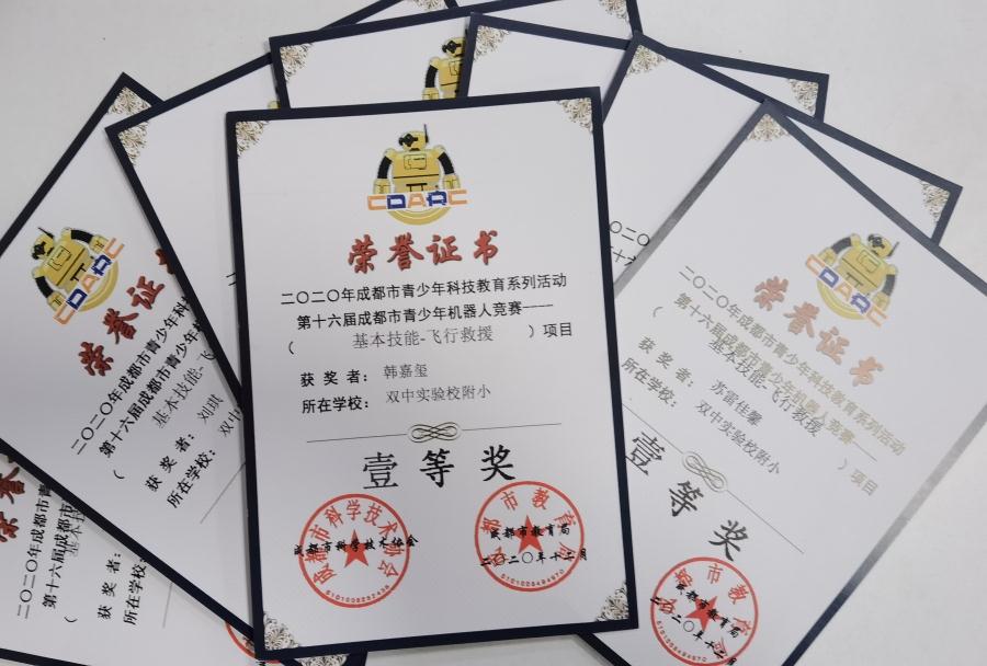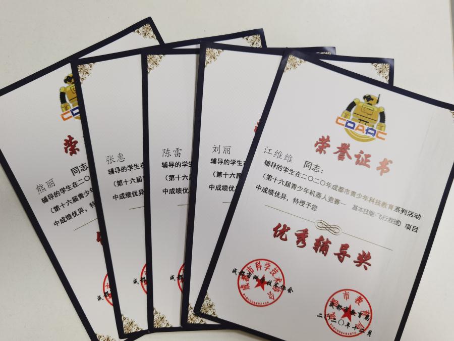 为进一步提高我校学生在信息技术方面的学习水平,培养孩子们的科技创新精神和动手实践能力,鼓励孩子们在信息、智能控制等领域进行学习、探索、研究和实践,激发他们对信息技术的兴趣,提高信息素养,我校5位信息技术老师积极辅导和组织学生,参加了2020年成都市青少年机器人竞赛的基本技能-飞行救援项目比赛。