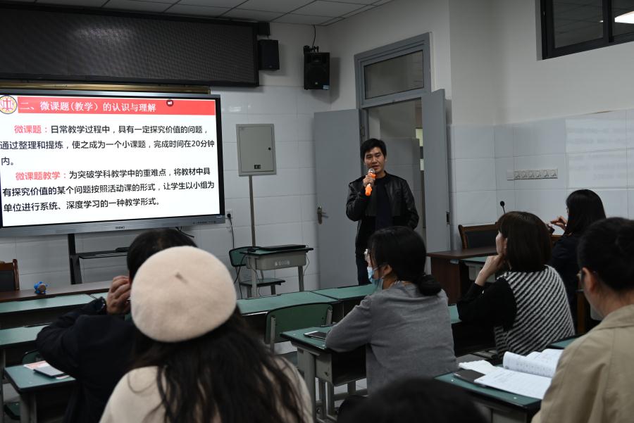 韩科老师从国家的改革举措、当前教育中存在的问题以及我校近二十年的活动课经验阐述了微课题的开发与实施背景,从微课题的认识与理解到微课题的开发工作进行了深入的讲解并且运用实际案例帮助我校教师更深层次地进行理解。
