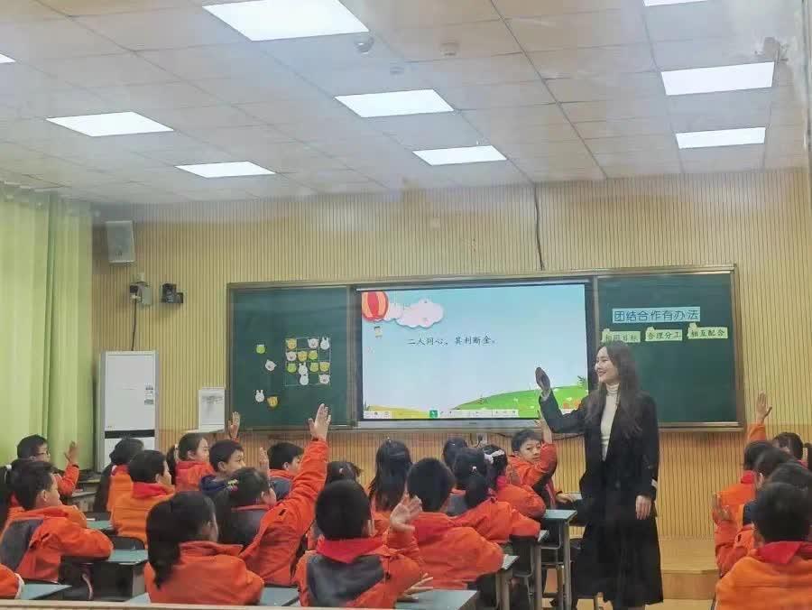 阳光透过银杏树金黄的叶子,将冬日的温暖洒向大地。项怡瑄老师带领5.1班的孩子们开展了一堂主题为《团结合作有办法》的班会课,项老师通过吃饼干、动物迷藏、背靠背、辨一辨这四个活动环节,生动形象地向学生展示了团结合作需要“相同目标”、“合理分工”、“相互配合”的重要性。最后,利用本课的知识,项老师引导学生对校级运动会进行了思考,做到了学以致用,让学生实实在在的收获了团结合作才能大放异彩,才能让班级、让自己变得更好的健全人格理念。