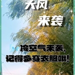 请大家根据天气变化,及时增减衣物,多吃热食,禁食生冷食物。大风天气,外出要提高警惕,小心慢行,远离高大建筑物、广告牌、临时搭建物等危险地带。雨天路上尽量避免涉水行走,以防跌入井坑、涵洞中。