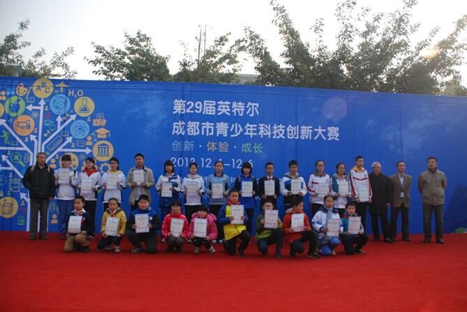 12月6日,以“创新.体验.成长”为主题的成都市第29届青少年科技创新大赛颁奖典礼在成都市郫县实验中学举行,我校两名学生喜获最高奖项“英才奖”,全市共25名。这两名同学分别是来自2015年级5班的阚筱梅同学,其作品《人类生活与生态平衡》获信息学项目英才奖,来自2014级13班学生刘宗航的作品《双流白河外来入侵物种——福寿螺的调查与研究》或科学论文项目英才奖。
