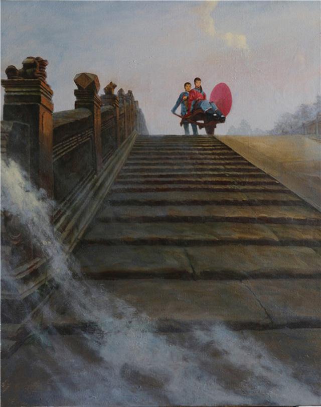 天府之国,司马相如的故乡,诸葛孔明的归宿,天府之国里,花重锦官城。透过邵智的油画作品,在坚持现实主义创作手法,同样洋溢着蜀地的灵性和诗意。这在纷繁的当下,是难能可贵的。主题创作《兄弟》采用中国传统的门神造型,反映出国共两党在抗日战争作出的巨大贡献。《解放大西南》,则是把四野挺进西南,通过肖像的方式展现出来。刘邓贺指挥大军横扫西南,此画功力不浅,小平帽徽之五角星虽未显但也一样的鲜红,寓意着走过的峥嵘岁月,因为那是无数中国人的鲜血染红的!