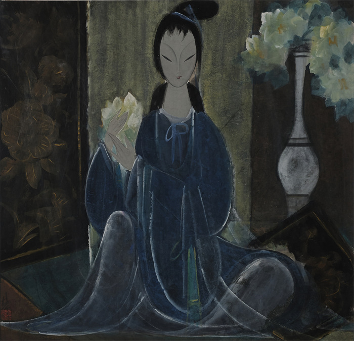《青衣仕女》 林风眠 纸本水墨设色 66cm×69cm 20世纪60年代 中华艺术宫(上海美术馆)藏