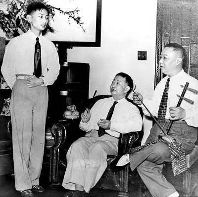 梅兰芳在北京护国寺寓所指导梅葆玖吊嗓,王少卿操琴