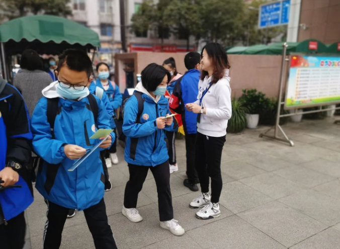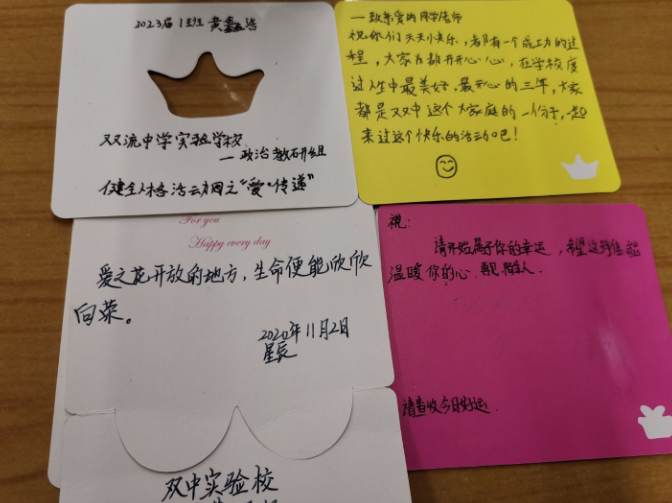 同学们在小小卡片上写上对陌生人的祝福,政治组的老师们作为传递者,把这份祝福在周二的早上传递给来上学上班的同学和老师们,你今天是否也收到了这张卡片?