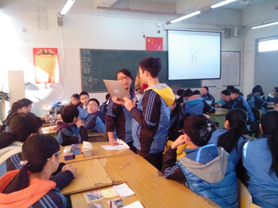 上午第五节课,王敏蓉老师在八年级21班做了题为《校园安全现状调查——成果整理》的示范课。整节课结构完整、选材丰富、活动精彩、组织有序……首先王老师对学生的座位做了调整,每个小组围成一桌,整个教室呈圆桌会议型,特别有利于教学活动的展开;在精炼的导入之后,王老师将教学内容划分成小组检查与点评、案例处理、图片整理、路线剪辑、问卷统计、制作思路等六个环节。每个环节既有老师的精彩讲解,又有学生的积极配合,整个课堂相得益彰,轻松活泼。最后,王老师还给学生布置了下节课的任务,以更好的指导学生完成此次活动课题。每位老师听后都连连称赞,笔者也从中学习许多。