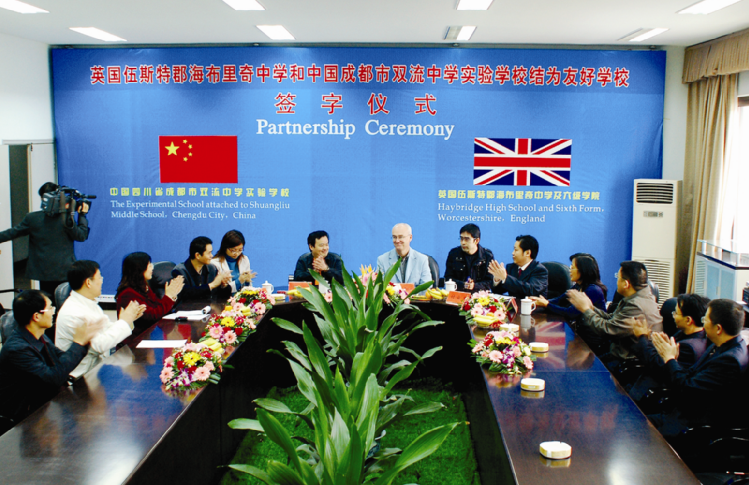 为深入推进教育的国际化,学校先后与美、英、德、澳等国名校建立了友好交流关系,与澳大利亚语言培训机构合作开办ECOMM英语实验班,为英语特长生将来通过“雅思”考试打下坚实基础;与德国唯利勃兰特中学、英国海布里奇中学、美国北卡堪美罗私立学校签订友好交流协议,开展互派教师执教、学生合作研究课题、网上交流、师生互访等活动。德英师生常年来访我校学习中国书法和武术,体验中国文化;我校每年也利用寒暑假组织学生赴英、德、美、澳等国友好学校访问,迄今为止共有489位师生到国外交流学习。英国学生在来访中就环境可持续发展与我校学生开展了全英文交流,并将我校学生的《白河水污染调查报告》带到丹麦哥本哈根气候会议上展示,受到BBC的关注和报道。为突出我校的外语教学特色,营造浓厚的英语学习氛围,学校常年举办英语俱乐部、英语广播站、英语手抄报比赛等活动,组织学生参与和收看CCTV杯“希望之星”风采大赛,并每年定期组织英语活动月和英语圣诞晚会,提高学生的英语学习兴趣和口语能力。