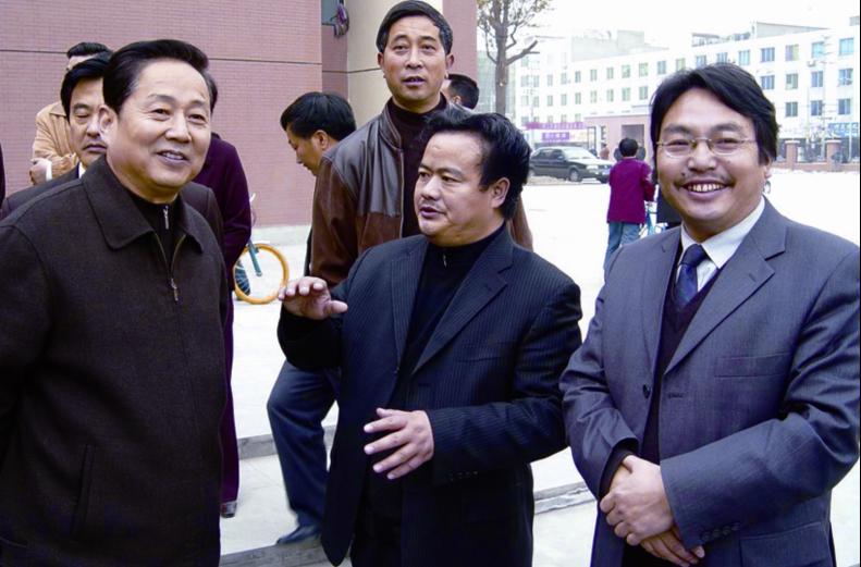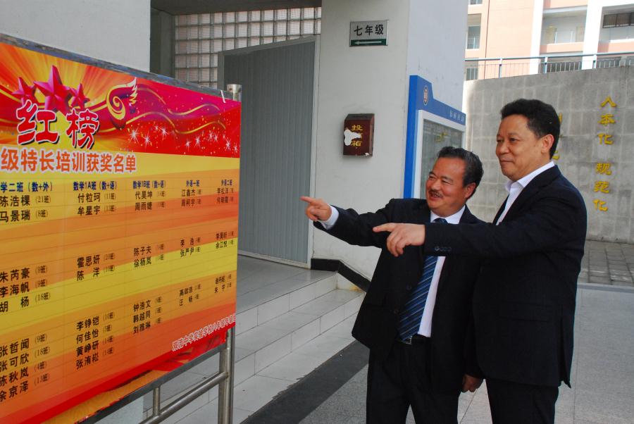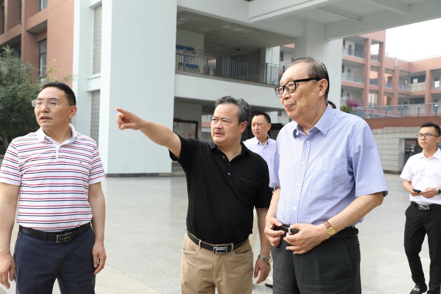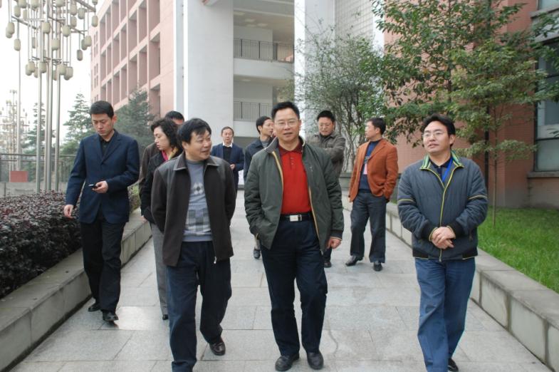 原成都市教育局副局长、现省政协副主席杨兴平(右二)来校视察工作