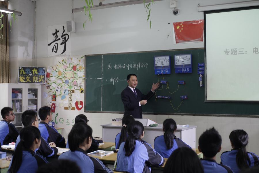 正高级教师、天府名师、成都市物理学科带头人罗晓章给学生上课