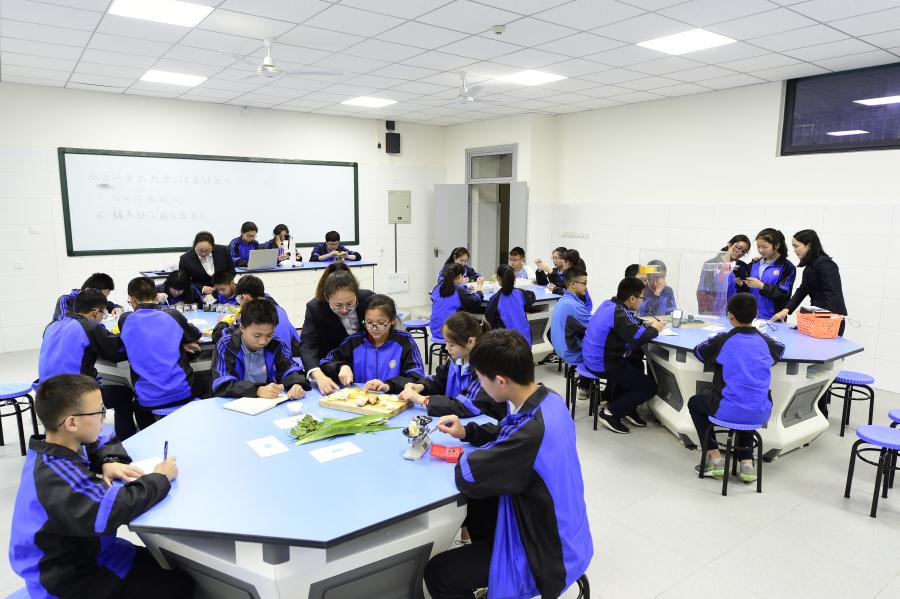 学校围绕“促进学生全面协调发展,充分发展学生个性特长,培养学生健全人格”的育人目标,紧扣《中小学教育质量综合评价指标》体系,构建和实施学科课堂教学模式,自主研发导学案,推动基础学科课程校本化,引领学生学业发展;构建和实施以课题研究性学习为特征的综合实践活动课程,促进学生综合应用,实践创新;构建和实施以学科拓展、社团活动为主体的选修课程,促进学生特长培养、个性发展;构建和实施以培养健全人格为核心的德育课程,促进学生品德和身心发展。学校还通过严控阶段性考试频度、限制并公示课外作业量、规范使用外来资料等机制,切实减轻学生学业负担。