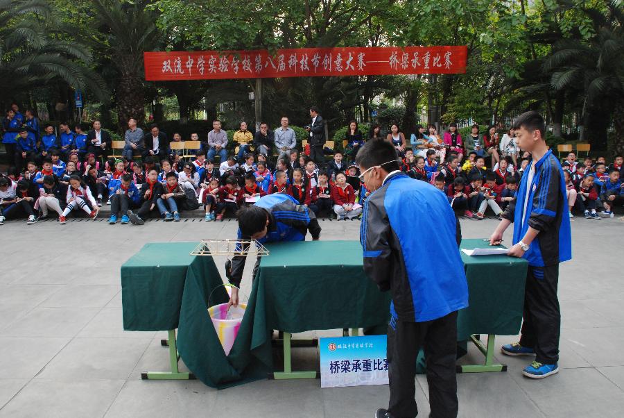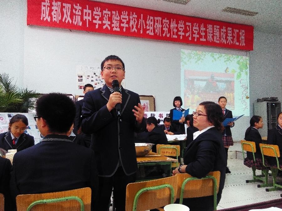 综合实践活动课是学校构建素质教育模式,实现育人目标的重要载体,学校拿出20%的课时来开发以课题探究性学习为特征的综合实践活动,让学生带着任务走出课本,去发现、探究、解决社会生产生活实际中的各类课题。目前,学校已建立校外综合实践活动基地16个,全员参与的活动课呈现出序列化、常态化、课题化的特点。通过开设综合实践活动课,学生自主学习能力得到了快速提高,学习方法也呈现出多元化,身上透射出更多的灵性和活力。在走进省科技馆、走进古镇黄龙溪、走进双流新城、走进杜甫草堂、走进双流水环境、走进城市交通等综合实践活动课程中,学生自主形成的探究方案和调查研究成果闪现出他们对社会对未来深入思考的智慧之光:科技实践活动《承载希望 放飞梦想——走进省科技馆》、《双流县城市河道——白河生态系统调查及治理措施研究》、《探知风云变幻 气象服务生活——校园气象观测与探究》获全国青少年科技创新大赛一等奖;《走进棠湖公园》、《投资与理财》等76节活动课参加全国学术年会获国家一、二等奖;《空中生态园——羊肚菌种植实践研究》、《实践探索 成就梦想——走进黄龙溪》、《太阳能光伏发电应用研究》科技实践活动获全国科创大赛一等奖、全国科创大赛二等奖、省科创大赛二等奖;《关注水资源 保护母亲河》课题研究报告获省二等奖;《探知风云变幻 气象服务生活》学生科技实践活动分别荣获全国、四川省科创大赛一等奖,同时荣获全国十佳优秀科技实践活动;《消灭福寿螺及福寿螺卵的研究报告》科学论文获得省科创大赛二等奖;《体验劳动,积极探究——走进彭镇种植基地》科技实践活动荣获省科创大赛一等奖、全国科创大赛二等奖。