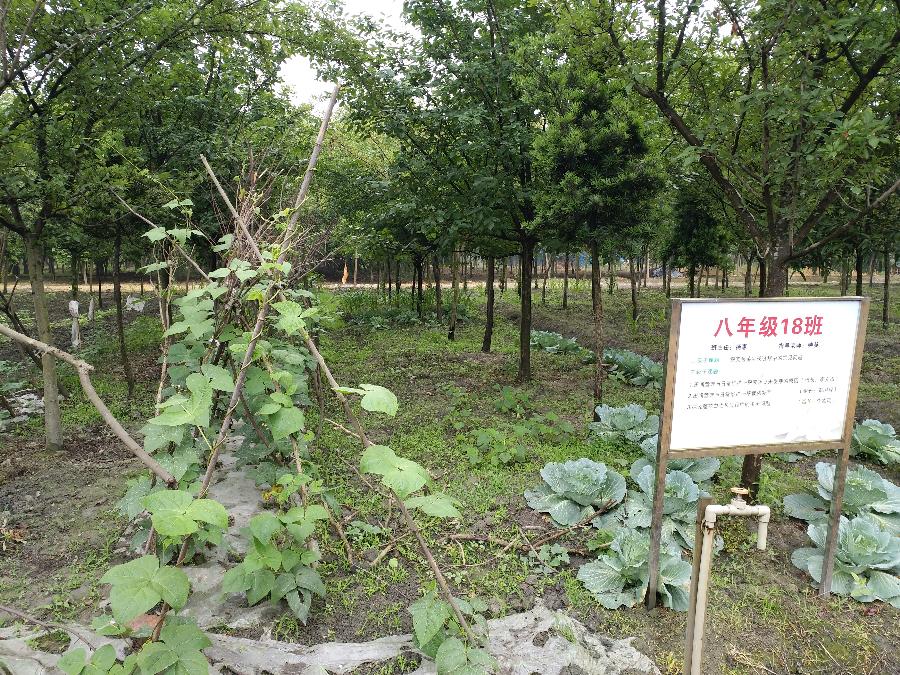 早上9:00,课题组全体成员从学校出发,赶往彭镇种植基地。到达基地后,呈现在我们面前的是八年级各班班主任、指导教师、同学们辛勤劳作的硕果。放眼望去,一片郁郁葱葱的幼苗破土而出,那片绿让人感觉到新生的希望。