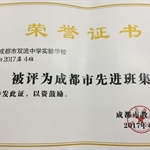 巧巧老师所带的班级——2017届4班获得“成都市先进班集体”荣誉称号实至名归。