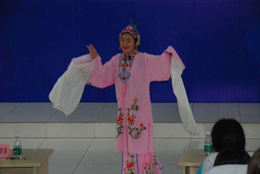 随后,我校学生们献出了一场富有中国特色的节目演出,悠扬婉转的竹笛声、赏心悦目的黄梅戏、热情奔放的蒙古舞等轮番登场,引起了美国青年学生的极大兴趣。