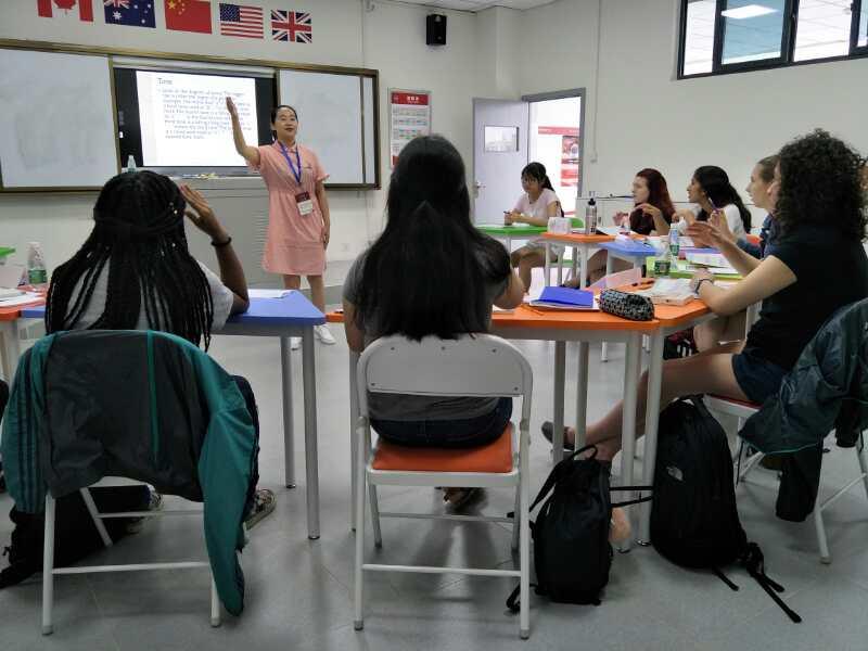 开营仪式后,美国学生们正式开始了第一天的汉语学习!