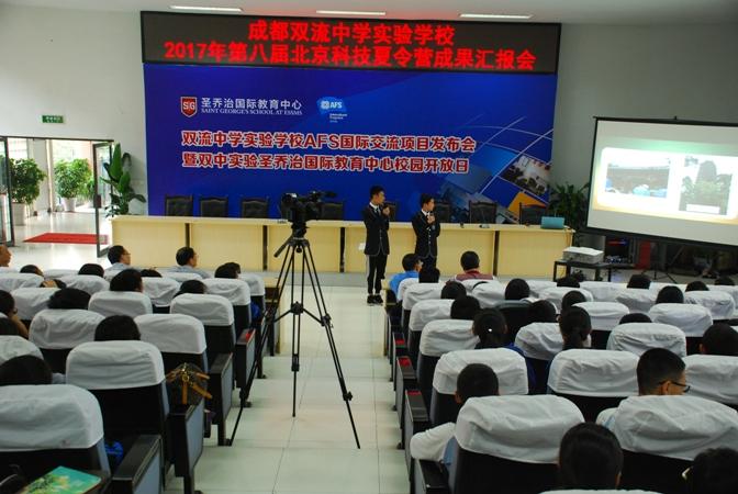 2017年9月19日下午,双流中学实验学校第八届北京科技夏令营成果汇报会在学术厅成功举行。校长高志文、副校长张润林、教务处主任周宗友、教科室主任文传福、教务处副主任罗晓章等领导莅临指导,并全程听取了汇报。