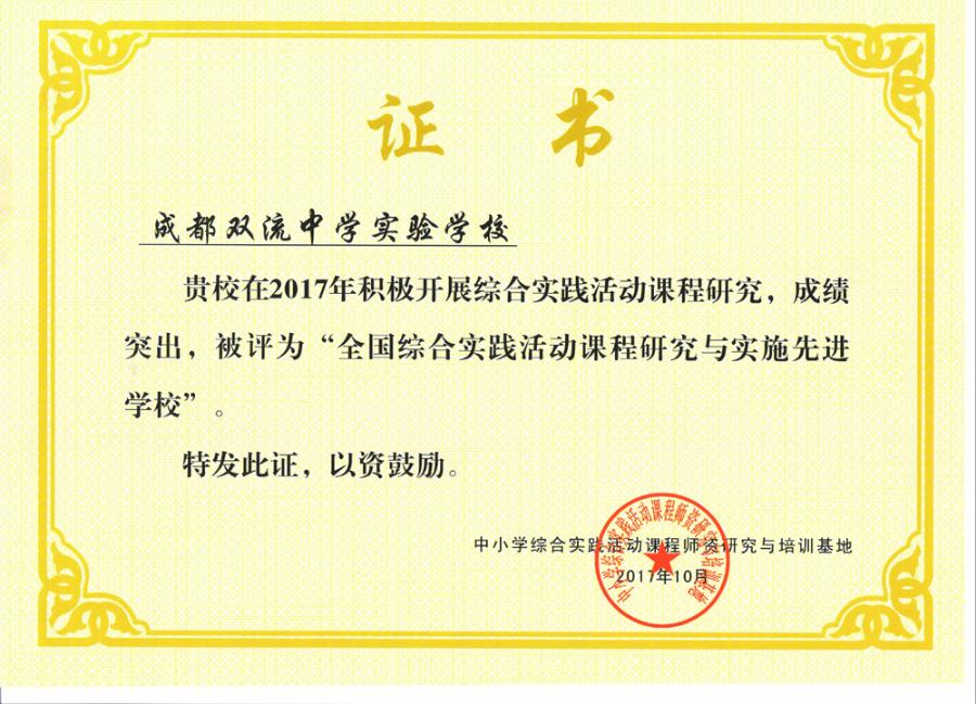 活动中,杨培禾、孙岩梅等专家在大会报告中多次指出,成都双流中学实验学校的综合实践活动课程理念与操作实践,走在全国的最前列,该校的课程板块设计结构是科学合理的,其经验是值得全国各地学习和借鉴的,并期待我校进一步展开探讨与研究,推进综合实践活动课程向纵深发展,其研究成果辐射全国!