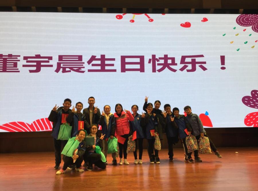 活动结束以后,现场还发生了非常温情的一幕。两个多月的同甘共苦,小演员们早已经成为了一个大家庭,表演当天正好是饰演阳阳爸爸的七年级7班学生董宇晨同学的生日,当大屏幕上显示:董宇晨生日快乐!小伙伴们共同唱响生日歌。相信今晚会成为他们难忘的美好记忆。