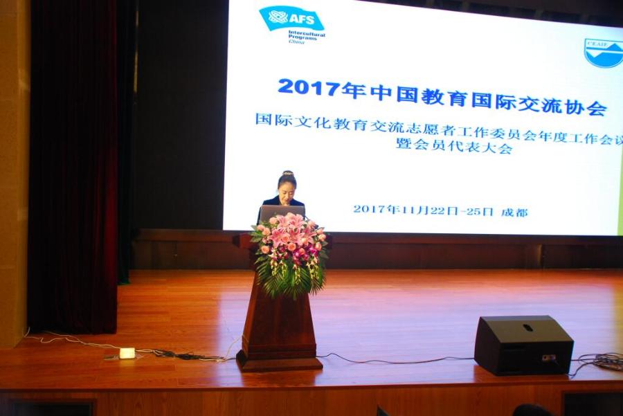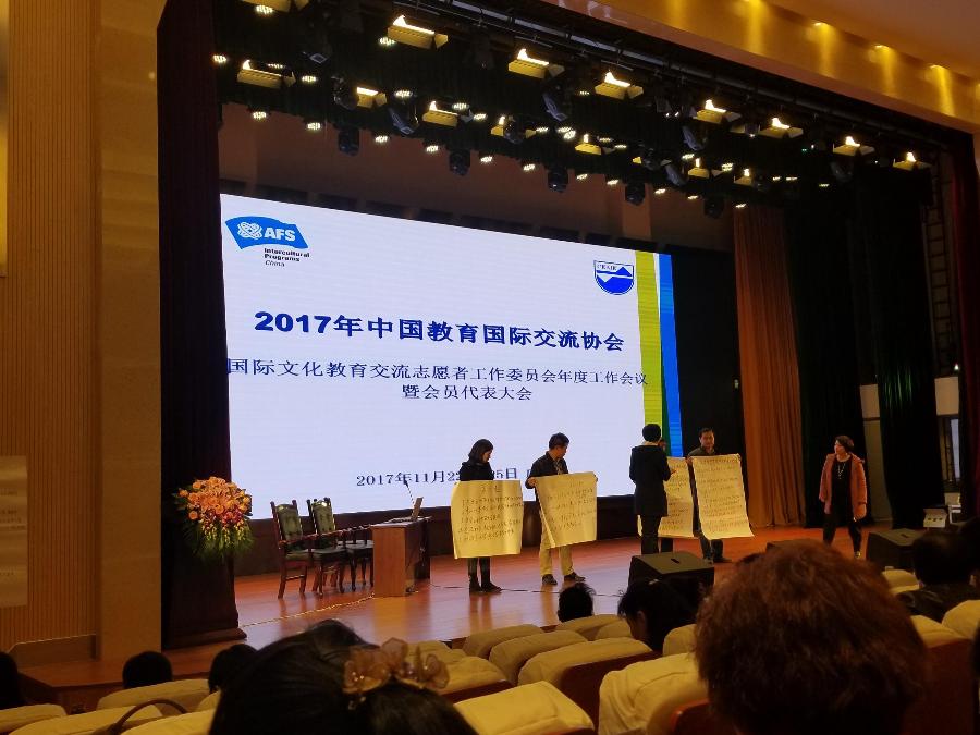 2017年11月22日-24日,2017年中国教育国际交流协会国际文化教育交流志愿者工作委员会年度工作会议暨会员代表大会并第六届国际理解教育论坛在成都双流中学实验学校举行。本次会议以“坚定文化自信,促进文化交流“为主题”,来自全国24个省市的地方办和近百所项目学校代表参会。