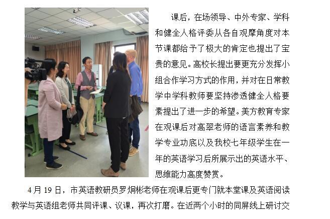 专家引领,国际交流,践行英语课堂核心素养培养