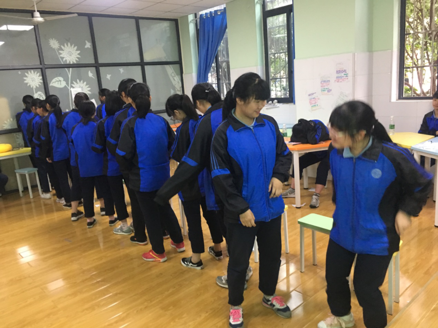 热身活动抢凳子:三组同学抢凳子,没有抢到的同学接受惩罚,每组最后赢的同学可以指定整个教室里的任何一个人满足自己的请求。第一轮在抢,第二轮在抢,第三轮一个男生主动站出来。他回答理由:在上次抢凳子我做了一个边边,旁边同学坐了多一半,但是他却自己出来把凳子让给我,我心里很内疚,所以我想站起来。第四轮抢凳子,一个组同学整个把凳子推在一边不去抢,他们回答理由:不想让那一个抢不到凳子的人尴尬就一起不抢了。再过了一会另一组也全部放弃抢,回答理由:觉得太残忍了。但是在第三组有一个女孩子每一轮都在认真的抢,并且她也坚持到了最后,她赢的特权是请老师就是我满足她的一个请求:免除所有没有抢到凳子人的惩罚。