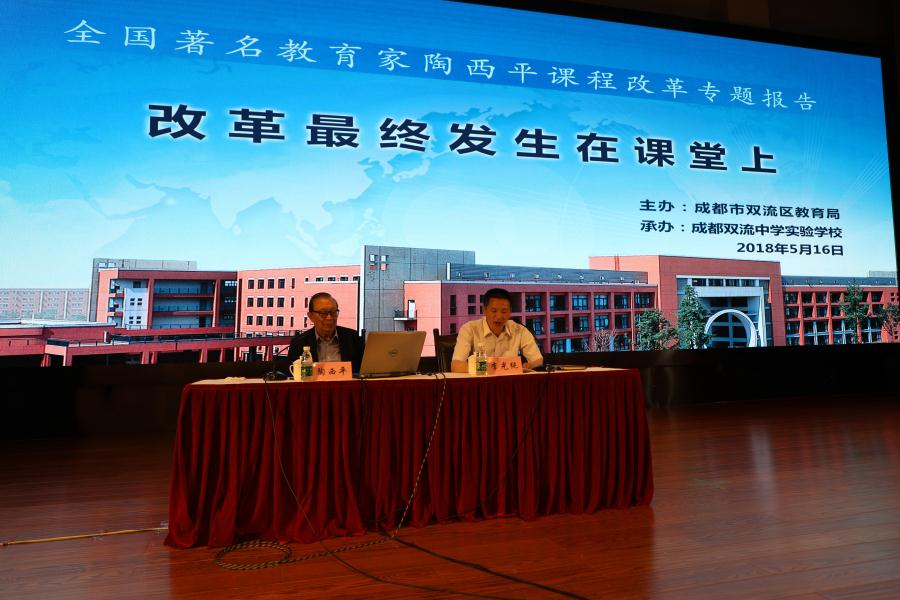 2018年5月16日,全国著名教育家、国家教育考试指导委员会委员、教育部普通高等学校师范类专业认证专家委员会委员、联合国教科文组织协会世界联合会荣誉主席陶西平先生莅临成都双流中学实验学校指导课程与教学改革工作并作学术报告。