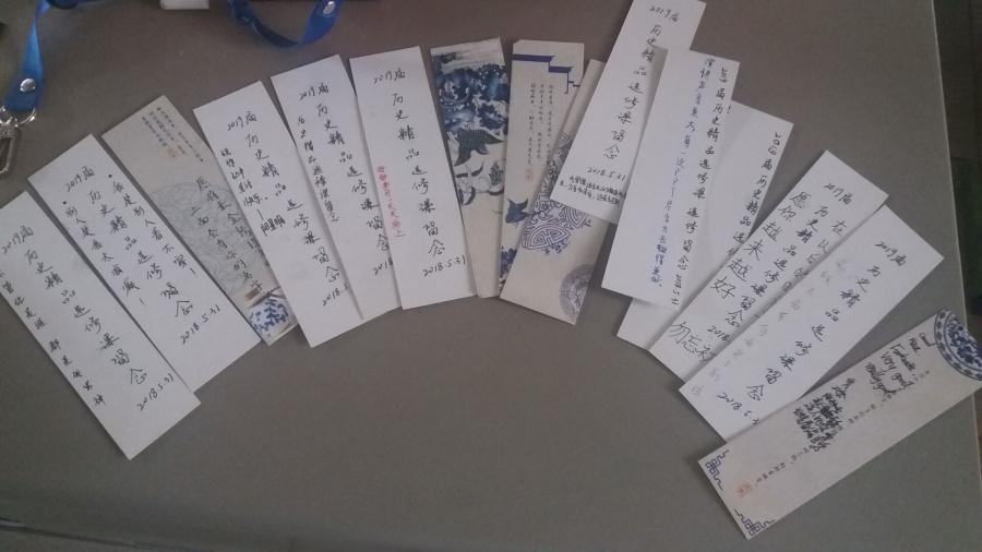 历史组七八年级担任选修课的老师们聚在一起,用心写下对每一个参加选修课孩子的祝福和寄语,虽然只是每周和孩子们短短两节课的交流,但每一个孩子在历史精品课上的精彩表现,在演讲活动中的激情四射,在文物DIY上的精雕细琢,一点一滴的成长变化都深深印在老师们的心里。