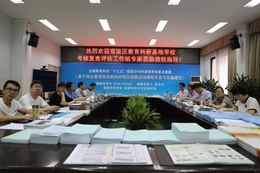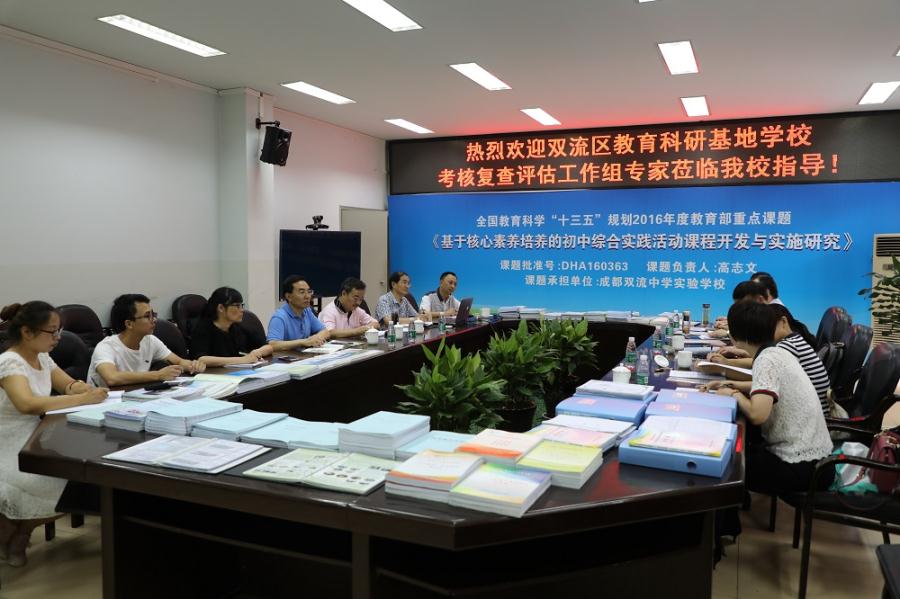 6月20日上午,双流区教育科研基地校考核评估工作专家组莅临双流中学实验学校对教育科研工作进行考核评估。专家组成员有四川省教育学会副秘书长、省特级教师、四川省教科院刘怀明老师,双流区教育局中教科廖冬梅科长,双流区研培中心理论室易恩主任,双流区研培中心教师发展室赵剑云主任、双流区研培中心高中室刘光文主任。