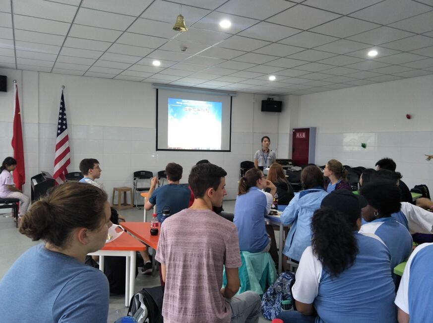 出发前,由课题组王雯雯老师用PPT向29名美国学生,导入本次活动的主题“走进双流图书馆”,让留学生了解走进双流图书馆活动的相关内容,本次活动背景及意义,填写“走进双流图书馆”写实记录的第一、二部分。