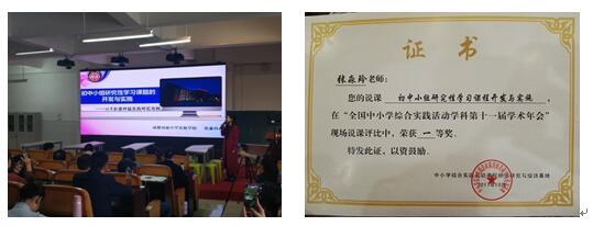 指导老师龙姿君作为四川省青少年活动中心“专家库成员”承担《空中生态园——羊肚菌种植研究》专题讲座,并被聘为甘孜州青少年校外科技辅导员。 指导老师张淼玲参加第十一届全国综合实践活动学术年会说课比赛,课题《初中小组研究性学习课程开发与实施——羊肚菌种植实践研究为例》荣获全国一等奖。因活动开展所产生的良好效果广泛传播,广东省第六期教育科研规划小课题研究(成都)高级研修班学习活动慕名来到我校,聆听龙姿君、张淼玲等老师的《研究性学习学生课题——羊肚菌种植实践研究》专题讲座。 2018年6月25-26日,在成都市青少年科技活动中心主办的成都市科技教师培训会上,段绪德老师应邀为大会做了题为《系统推进小组探究性学习的研究与实践》的专题讲座。 由于活动的扎实开展,得到了教育主管部门——双流区教育局研培中心生物教研员杜尚兵老师的认可,指导老师张淼玲受其邀请在全区初中生物教研会上做《初中生物小组研究性学习课题的开发与实施》专题讲座;指导老师龙姿君受邀在双流区高二生物教研会上做《空中生态园——羊肚菌种植实践研究课题》专题讲座。