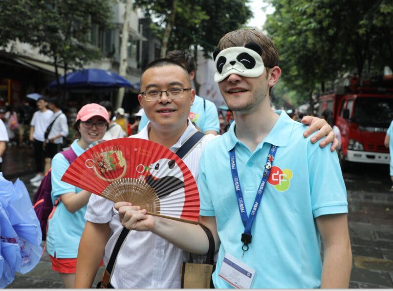 7月24日上午,29名美国小哥哥小姐姐们来到成都西村文化创意产业园参加以“青春梦想·相约四川”为主题的“2018中外大学生四川感知行”活动的启动仪式。在这里他们和另外300多名中外大学生代表一起,更深层次地了解成都这个被称作“一个来了就不想走的城市”,从悠久历史到川味美食,成都以其时尚的休闲品味、历史文化与商业交融的独特氛围,吸引住了大家的目光。启动仪式上,省、市领导纷纷向学生代表们表示热烈欢迎,并希望更多地了解四川,了解成都,能碰撞出更多的火花。启动仪式后,成都电视台、成都商报等新闻媒体,争相采访了我们的小哥哥小姐姐们。