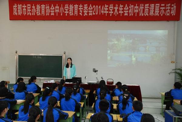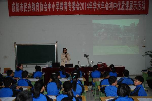 2014年4月23日上午,成都市民办教育协会中小学教育专委会2014年学术年会初中优质课展示活动在我校学术厅举行,成都市民办教育协会副会长、秘书