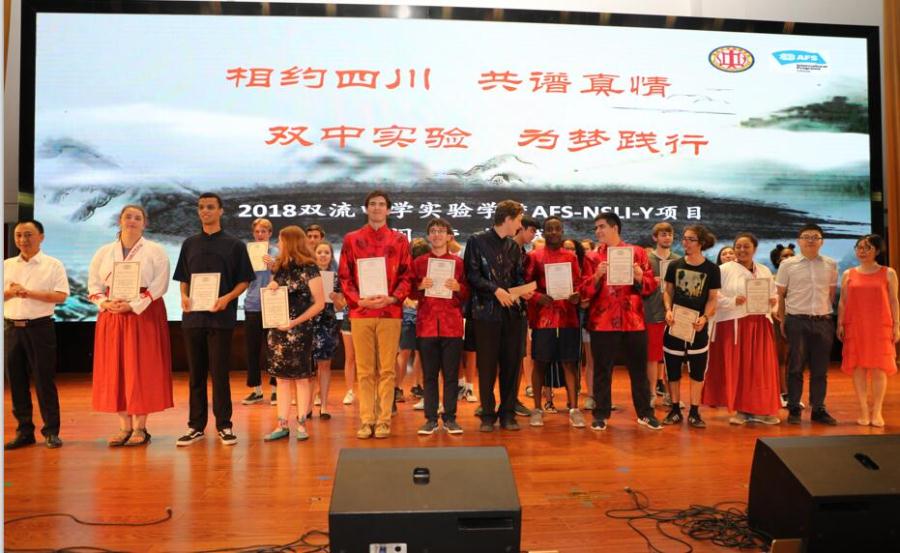 由我校承办的为期六周的2018AFS美国NSLI-Y项目,于8月9日圆满结束。该项目是全国规格最高、规模最大的外事项目之一, 是提升我校国际化办学水平的重要举措。本项目的顺利推进,得到了中国教育国际交流协会和四川省教育厅对外合作交流处的充分信任和大力支持。