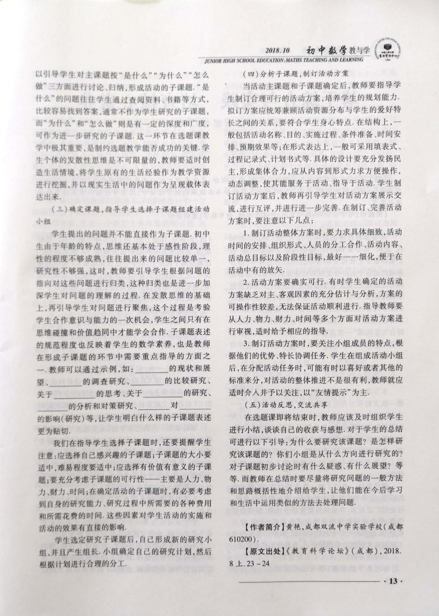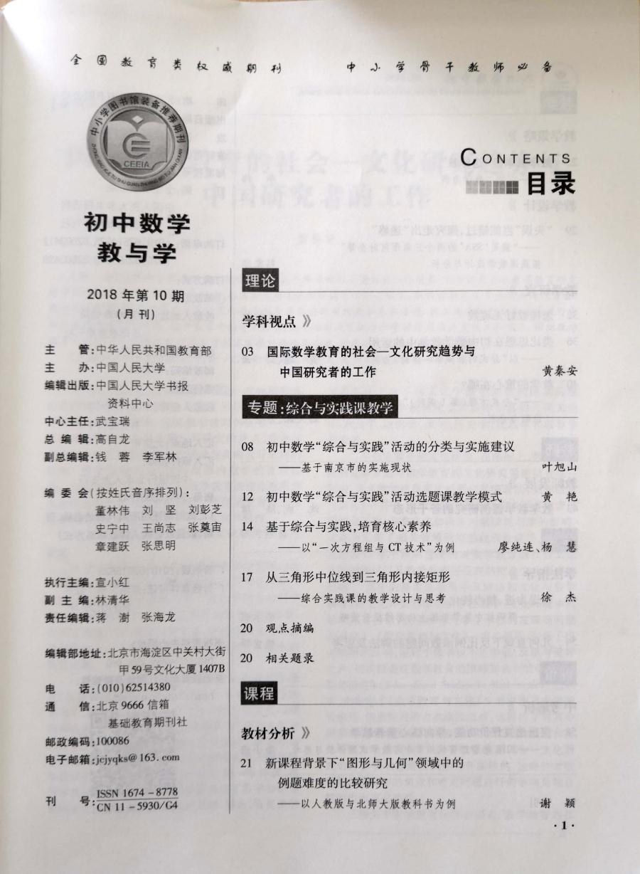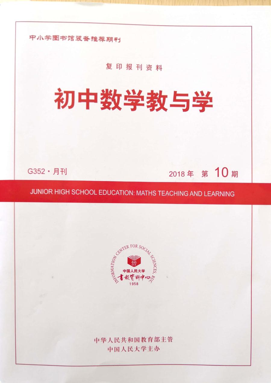 热烈祝贺黄艳老师论文《初中数学“综合与实践”活动选题课教学模式》被人大《复印报刊资料·初中数学教与学》转载2018年第10期转载。