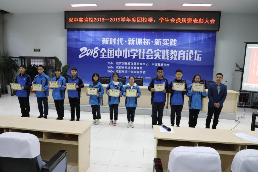 2018年11月6日晚,在学校学术演讲厅,全校新老团校委成员、学生会干部、国旗班队员和班级学生干部代表参加了双流中学实验学校2018—2019学年度团校委、学生会、国旗班成立表彰大会。本次大会得到了学校德育处高度重视,德育处王敏蓉主任,德育处王俊老师、杨四维老师、雷蓓蕾老师、谢华老师参加了此次大会。大会由学生会宣传部长刘姜伶同学主持。