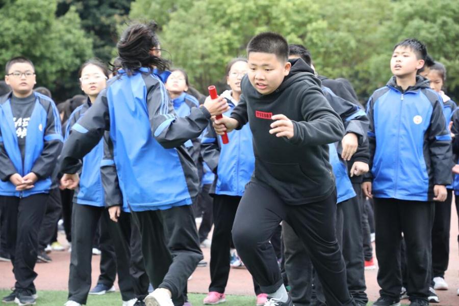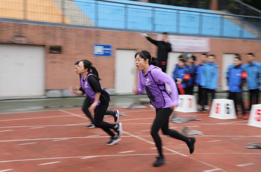 教职工迎面接力比赛:九年组获得一等奖,七年级组、八年级组获得二等奖,后勤组、小学组、附幼组获得三等奖。