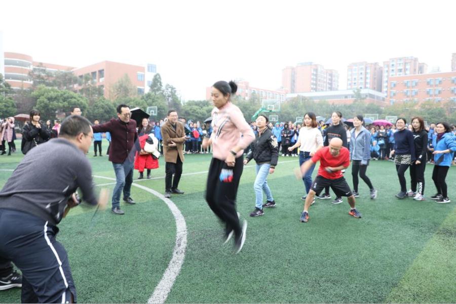 教职工跳绳比赛:九年级组获得比赛一等奖,八年级组、小学组获得二等奖,七年级组、后勤组、附幼组获得三等奖。