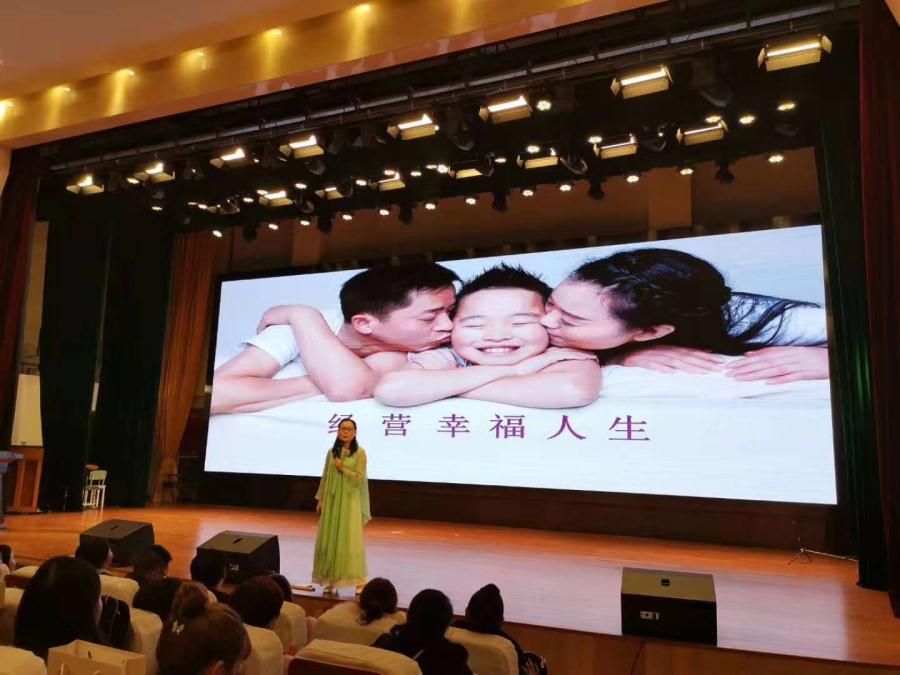 下午一点,家长们首先来到我校国际部多功能厅参加由校德育处承办的家长成长课程“经营幸福人生”,这是我校在健全人格理念指导下家校共育的一个重要组成部分,在此次讲座中,周蓉溶导师认为:孩子是家庭的希望,需要我们用心去呵护,用心去经营。对孩子的培养无疑是一项长期投资,那么需要做的不仅仅是投资孩子的现在,更需要去投资孩子的未来。如果孩子知道他们的家长深爱着彼此、信任着彼此、他是父母爱情的结晶,孩子才会更愿意接受父母的规劝,才会更愿意学习父母优雅得体的行为举止。所以,家庭是影响孩子终身成长的学校,如何能够妥善地处理好学生在成长中遇到的困惑与困难,有效解决家庭生活中的亲子矛盾与冲突,不仅有利于促进学生良好的家庭氛围的形成,也能促进学生在校期间的健康发展,最终为孩子们的成长营造一个更美好的环境,促进他们良好个性、性格的养成。周蓉溶导师的讲座贴近家庭教育的实际因而得到了与会家长的由衷的认同和点赞。