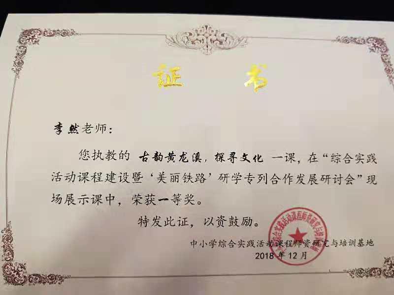 李然老师荣获全国综合实践活动展示课一等奖